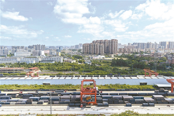 截至9月22日,2025年广西始发中越班列已累计发运出口货物2.6万标箱,同比增长173%,为区域产业链、供应链稳定和经贸往来注入强劲动能。图为9月23日,南宁国际铁路港一派繁忙景象。新华社记者 邢广利 摄
